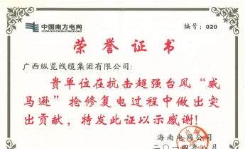全國(guó)電線電纜產(chǎn)品質(zhì)量監(jiān)管AA級(jí)企業(yè),全國(guó)重合同守信用單位,廣西“二十五”電線電纜產(chǎn)業(yè)重點(diǎn)扶持企業(yè),國(guó)家強(qiáng)制性產(chǎn)品CCC認(rèn)證